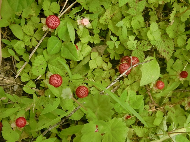 蓬にスギナ、ギシギシ、イタドリ、スミレに蛇イチゴ、ハコベ、クローバーアザミにホタルブクロ。