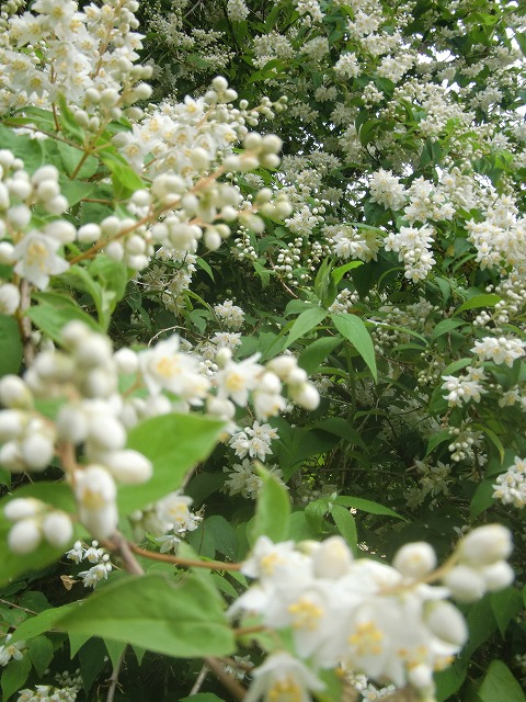 この時期に、真っ白い花を楽しませてくれる薬木です。