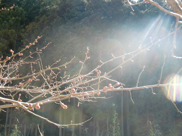 硬かった蕾も春の陽気でチラホラと梅の花が咲き出しました。