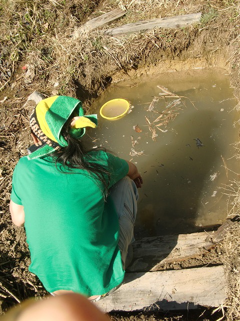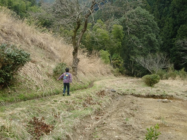 いくつかの苗木を植え、お弁当を食べ、川の様子を見に行き、もうすぐ泳げると嬉しそうに話す娘達。いい具合に雨が降って来たので、水やりは雨にお任せしました。