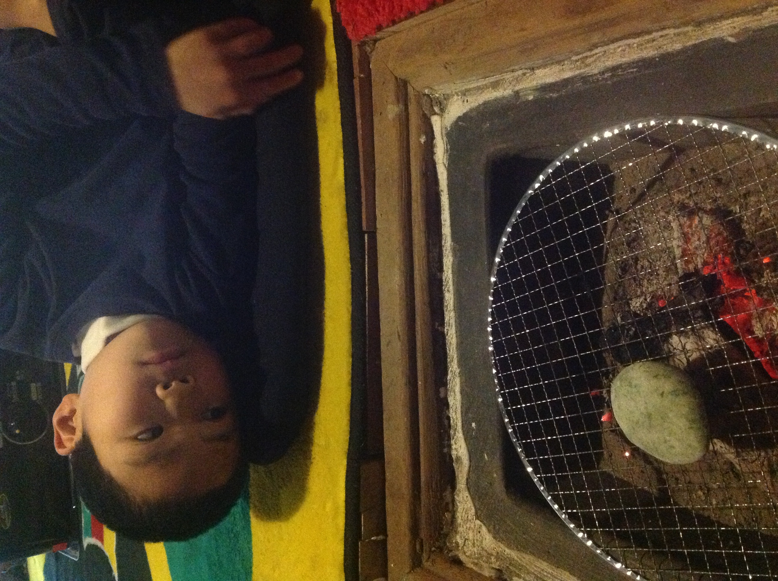 囲炉裏の火をおこし。