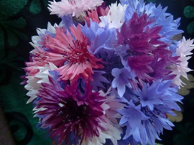 庭に蒔いた矢車草が満開だ。
