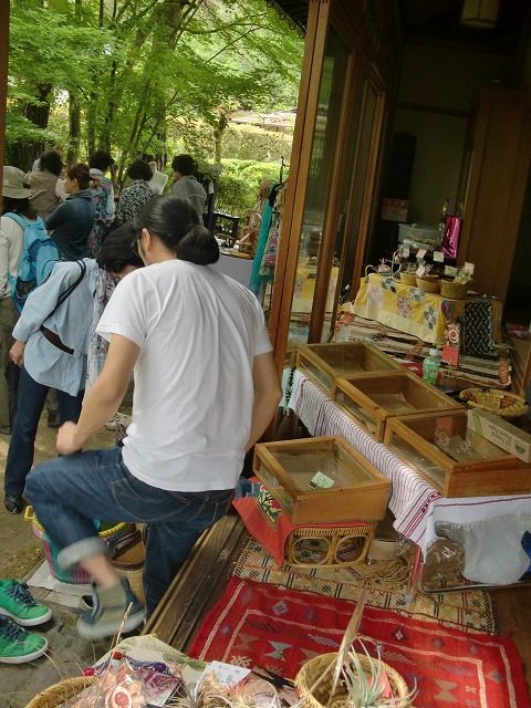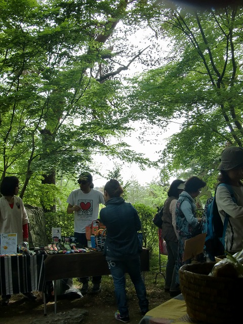濃い緑の中の蚤の市。