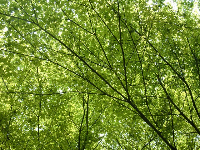 寝転ぶと樹が円を描くように生えてるから樹の家にいてる気分になる。