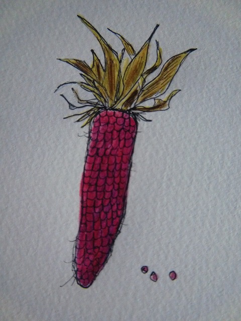 トウモロコシの芯はとても発酵力が強いので、トウモロコシの粉と実を削いだ後の芯でパンが作れる。赤い色のトルティーヤ? (笑)