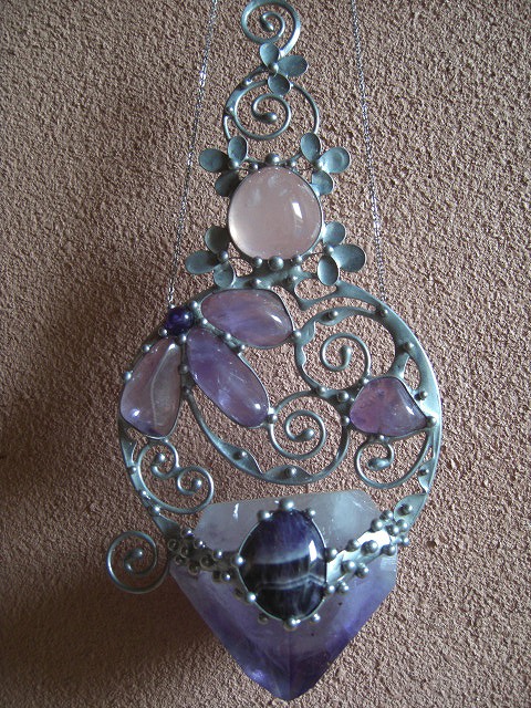 色んな色のムーンストーンがくっついていて、女性のシャーマンが使うものらしい。