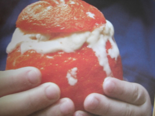 くりぬいているうちに、これのメロン味のアイスが昔あったな。で、出来たアイス。