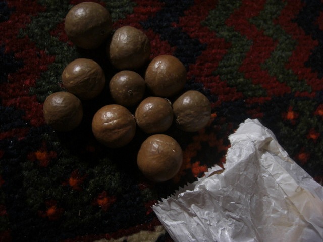 金槌で割らないと割れないほど、ぶ厚い殻に包まれている。