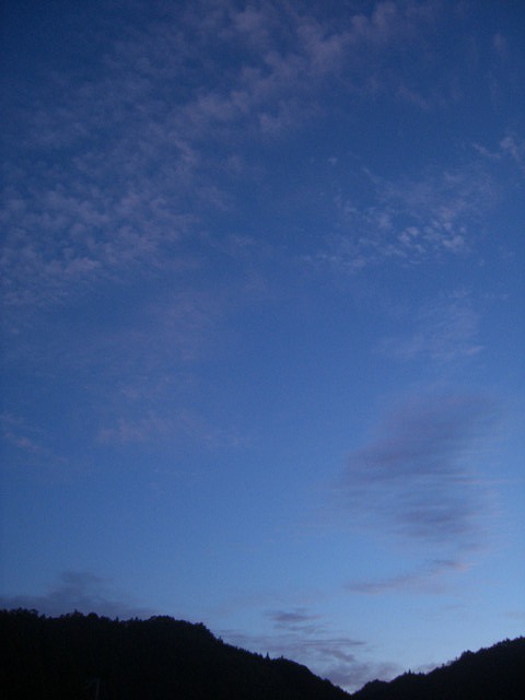 夕方の6時ぐらいから、夜に落ちるまでの間に何色かの空色、青色、藍色、群青へと移り変わる。