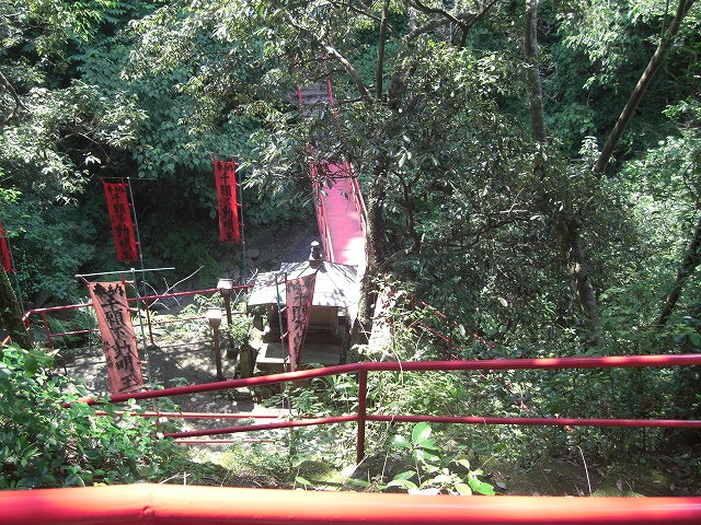 千願不動の滝。迷路のような赤い橋をどんどん行くと途中に綺麗な滝、