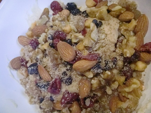 ポポーの酵母と繋ぎ程度の全粒粉に、沢山のナッツにseed,ドライフルーツを混ぜたおやつパン。