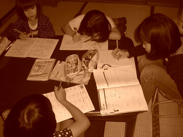 姉が妹に教え、妹が姉に教え宿題が終わると各自、趣味の世界に没頭する。