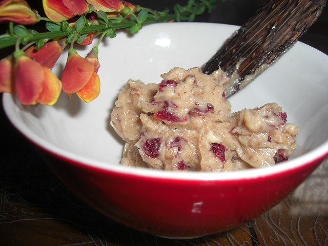 アーモンド粉にシナモン、バニラビーンズ、ピンクペッパー、蜂蜜に