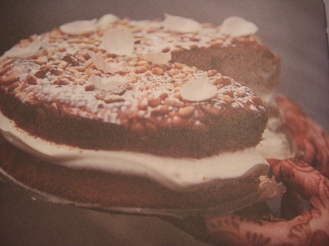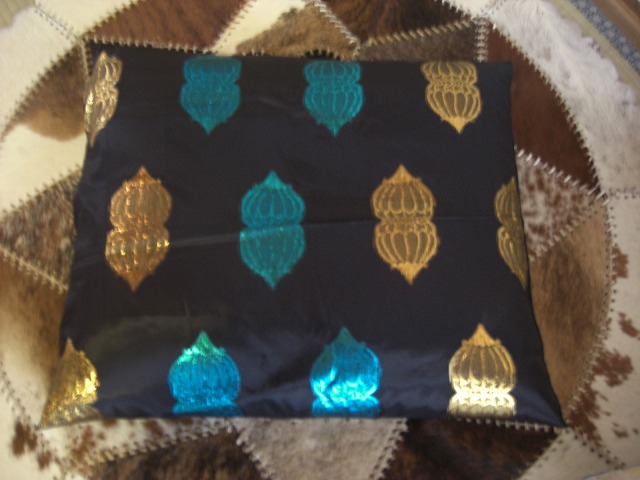 ブラウニーが焼ける間、アラブの親父さんから買ったデットストックの布で座布団を作りました。